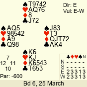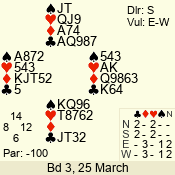 3 NT | E | +1 | -630 | 2 | 13 - 11 | 3 | 13 |