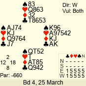 Con | Dc | Res | Score | Ld | Pairs | Rd | Tbl | 3 NT | S | +2 | 660 | 7 | 06 - 09 | 11 | 6 |