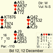 3 NT | W | +2 | -460 | T | 12 - 11 | 2 | 12 |