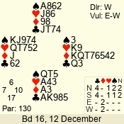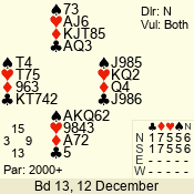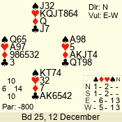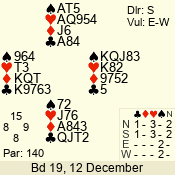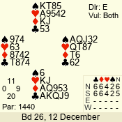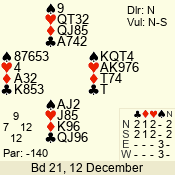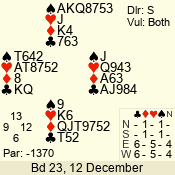 Con | Dc | Res | Score | Ld | Pairs | Rd | Tbl | 6 NT | N | +1 | 1470 | 3 | 13 - 14 | 14 | 13 |