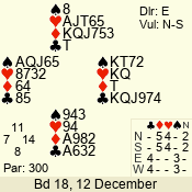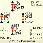 Con | Dc | Res | Score | Ld | Pairs | Rd | Tbl | 3 NT | S | +3 | 690 | 5 | 12 - 11 | 2 | 12 |