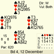 Con | Dc | Res | Score | Ld | Pairs | Rd | Tbl | 4 NT | W | -3 | 150 | 2 | 13 - 01 | 13 | 13 |