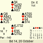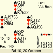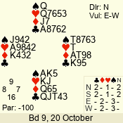 Con | Dc | Res | Score | Ld | Pairs | Rd | Tbl | 3 N | N | = | 400 | 2 | 09 - 09 | 16 | 9 |
