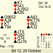 Con | Dc | Res | Score | Ld | Pairs | Rd | Tbl | 4  | S | +2 | 480 | 9 | 01 - 12 | 22 | 1 |