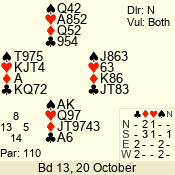Con | Dc | Res | Score | Ld | Pairs | Rd | Tbl | 1 N | N | +2 | 150 | K | 12 - 10 | 18 | 12 |