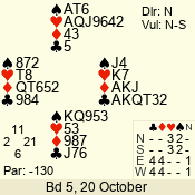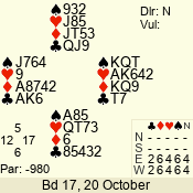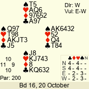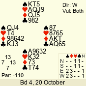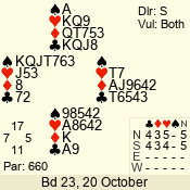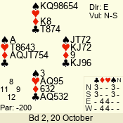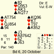 Con | Dc | Res | Score | Ld | Pairs | Rd | Tbl | 4 x | E | -2 | 500 | A | 06 - 06 | 1 | 6 |