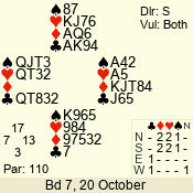 Con | Dc | Res | Score | Ld | Pairs | Rd | Tbl | 6 N | N | +1 | 1020 | J | 10 - 09 | 17 | 10 |