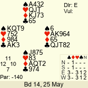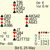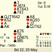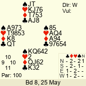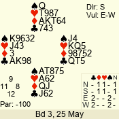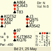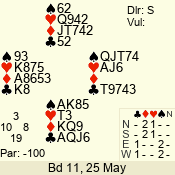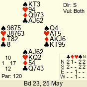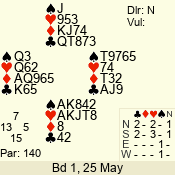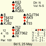 Con | Dc | Res | Score | Ld | Pairs | Rd | Tbl | 3 NT | W | -1 | 50 | 3 | 04 - 05 | 6 | 4 |