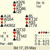 Con | Dc | Res | Score | Ld | Pairs | Rd | Tbl | 3 NT | N | = | 600 | 9 | 03 - 04 | 6 | 3 |
