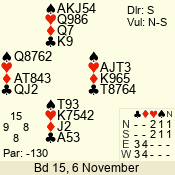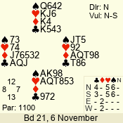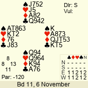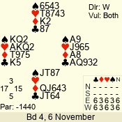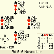 3 NT | W | +1 | -430 | 6 | 05 - 01 | 5 | 5 |