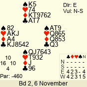Con | Dc | Res | Score | Ld | Pairs | Rd | Tbl | 5 NT | S | = | 460 | 4 | 01 - 03 | 8 | 1 |