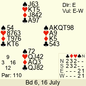 Con | Dc | Res | Score | Ld | Pairs | Rd | Tbl | 3 N | N | +4 | 520 | 3 | 04 - 04 | 1 | 4 |