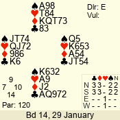 3 NT | E | +1 | -430 | 2 | 08 - 02 | 7 | 8 |
