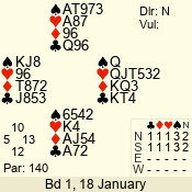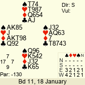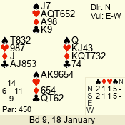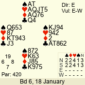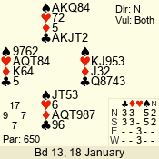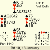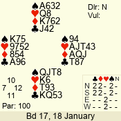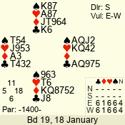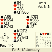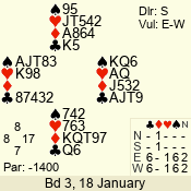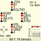 Con | Dc | Res | Score | Ld | Pairs | Rd | Tbl | 3 NT | S | +3 | 690 | 6 | 05 - 06 | 7 | 5 |
