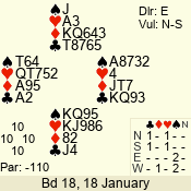 Con | Dc | Res | Score | Ld | Pairs | Rd | Tbl | 2  | E | = | -110 | J | 05 - 01 | 5 | 5 |
