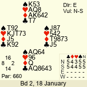 Con | Dc | Res | Score | Ld | Pairs | Rd | Tbl | 3 NT | N | +2 | 660 | 5 | 04 - 07 | 5 | 4 |