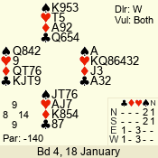 3 NT | W | +2 | -460 | 8 | 01 - 05 | 4 | 1 |