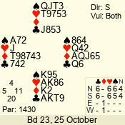 3 NT | S | +1 | 430 | 9 | 07 - 04 | 4 | 7 |
