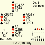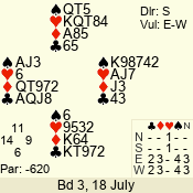 3 NT | S | +1 | 430 | 9 | 05 - 03 | 3 | 5 |
