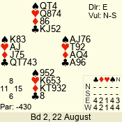 3 NT | E | +1 | -430 | 3 | 09 - 06 | 4 | 9 |