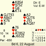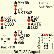 3 NT | E | +1 | -430 | 9 | 10 - 08 | 3 | 10 |