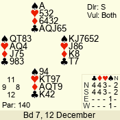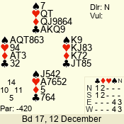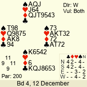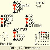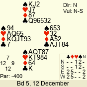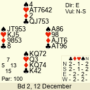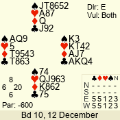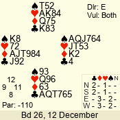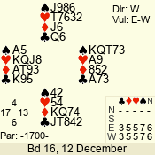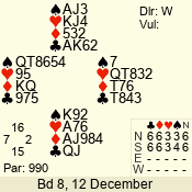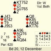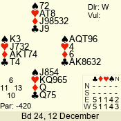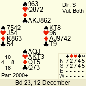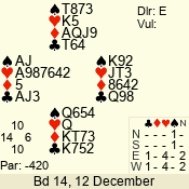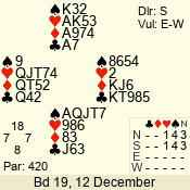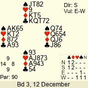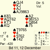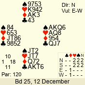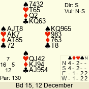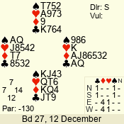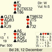 | 3 NT | S | +2 | 660 | 3 | 13 - 13 | 1 | 13 |