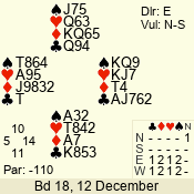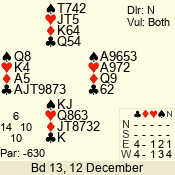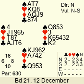 | 3 NT | S | +1 | 630 | Q | 02 - 04 | 13 | 2 |