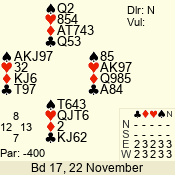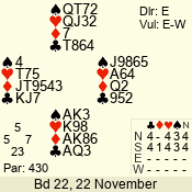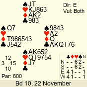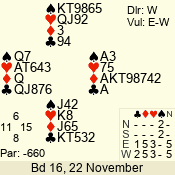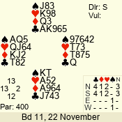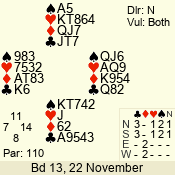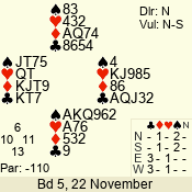 3 NT | W | +1 | -430 | 3 | 11 - 11 | 1 | 11 |