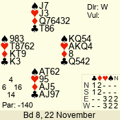 3 NT | W | +1 | -430 | 3 | 08 - 05 | 4 | 8 |