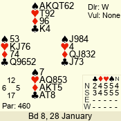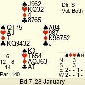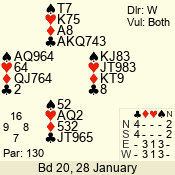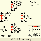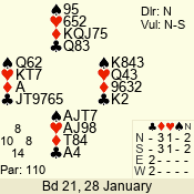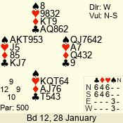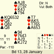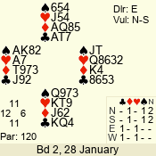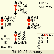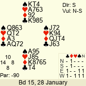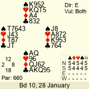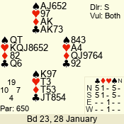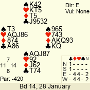 Con | Dc | Res | Score | Ld | Pairs | Rd | Tbl | 3 N | S | +1 | 630 | 6 | 01 - 14 | 20 | 1 |