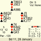 Con | Dc | Res | Score | Ld | Pairs | Rd | Tbl | 3 N | S | = | 400 | 2 | 11 - 09 | 19 | 11 |