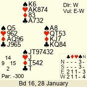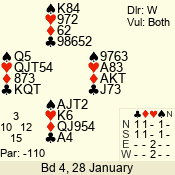 Con | Dc | Res | Score | Ld | Pairs | Rd | Tbl | 4 x | W | -4 | 1100 | A | 01 - 15 | 23 | 1 |