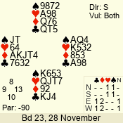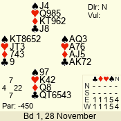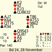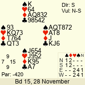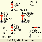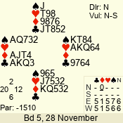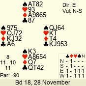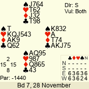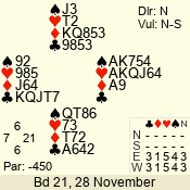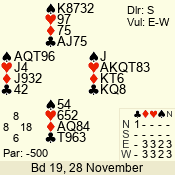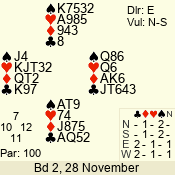 3 NT | S | +1 | 430 | 4 | 02 - 05 | 8 | 2 |