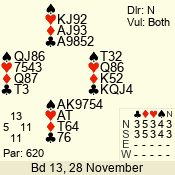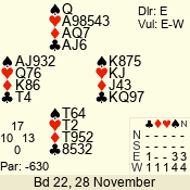 3 NT | E | +1 | -430 | 5 | 02 - 09 | 12 | 2 |