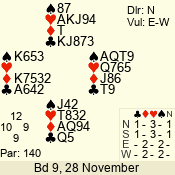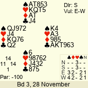 3 NT | S | +1 | 430 | Q | 01 - 03 | 9 | 1 |