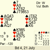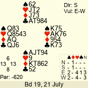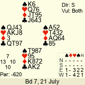 Con | Dc | Res | Score | Ld | Pairs | Rd | Tbl | 5  | S | +1 | 620 | Q | 04 - 09 | 6 | 4 |