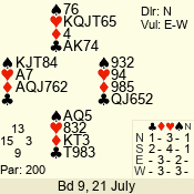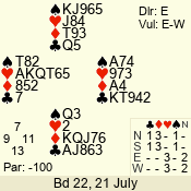 Con | Dc | Res | Score | Ld | Pairs | Rd | Tbl | 3 NT | E | -1 | 100 | 2 | 06 - 09 | 8 | 6 |