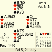 Con | Dc | Res | Score | Ld | Pairs | Rd | Tbl | 6 NT | N | = | 1440 | Q | 10 - 08 | 3 | 10 |