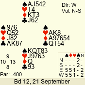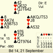 3 NT | W | +4 | -520 | 8 | 11 - 12 | 12 | 11 |