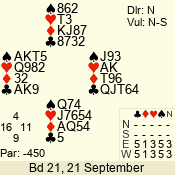 Con | Dc | Res | Score | Ld | Pairs | Rd | Tbl | 4  | N | +1 | 450 | A | 11 - 12 | 12 | 11 |
