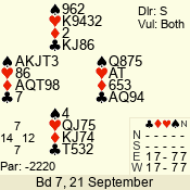 Con | Dc | Res | Score | Ld | Pairs | Rd | Tbl | 6 NT | S | +1 | 1020 | 2 | 07 - 01 | 7 | 7 |