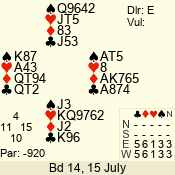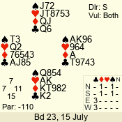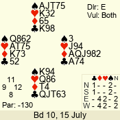 Con | Dc | Res | Score | Ld | Pairs | Rd | Tbl | 4  | S | +1 | 450 | A | 03 - 04 | 8 | 3 |