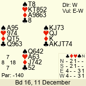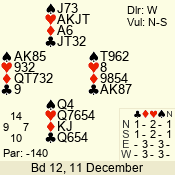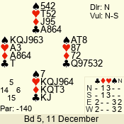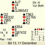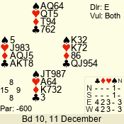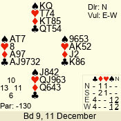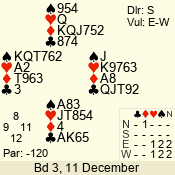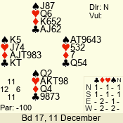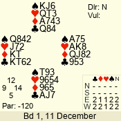 3 NT | W | +1 | -630 | Q | 11 - 09 | 3 | 11 |