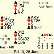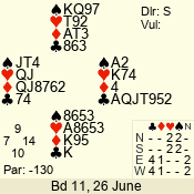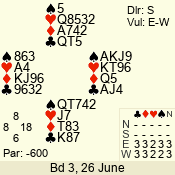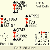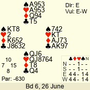 3 NT | S | +1 | 630 | 9 | 07 - 06 | 2 | 7 |