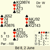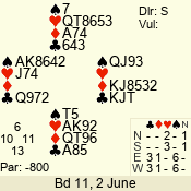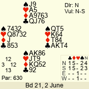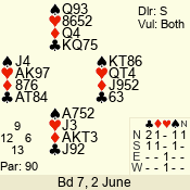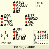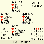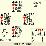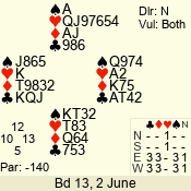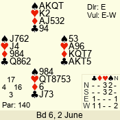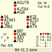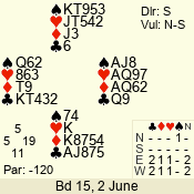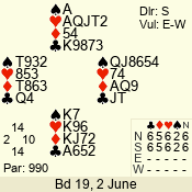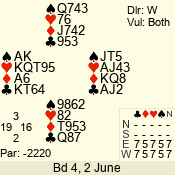 Con | Dc | Res | Score | Ld | Pairs | Rd | Tbl | 3 N | S | +4 | 520 | 2 | 05 - 03 | 3 | 5 |