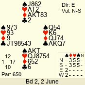 Con | Dc | Res | Score | Ld | Pairs | Rd | Tbl | 4  | S | +1 | 650 | 9 | 05 - 02 | 4 | 5 |