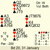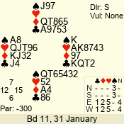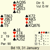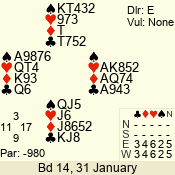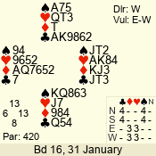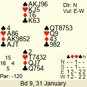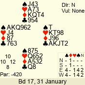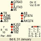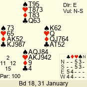 Con | Dc | Res | Score | Ld | Pairs | Rd | Tbl | 5 x | E | -4 | 1100 | K | 01 - 16 | 22 | 1 |