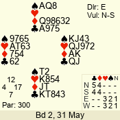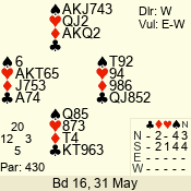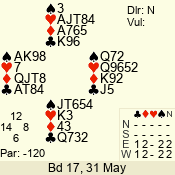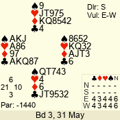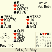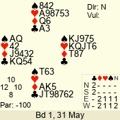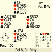 Con | Dc | Res | Score | Ld | Pairs | Rd | Tbl | 6 NT | W | -3 | 300 | 8 | 04 - 04 | 11 | 4 |