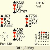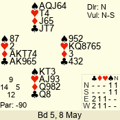 Con | Dc | Res | Score | Ld | Pairs | Rd | Tbl | 2 NT | W | = | -120 | 2 | 03 - 02 | 2 | 3 |