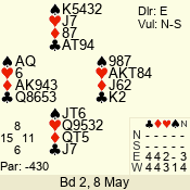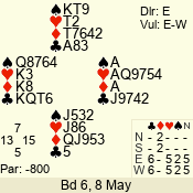 Con | Dc | Res | Score | Ld | Pairs | Rd | Tbl | 2 NT | E | = | -120 | 3 | 03 - 02 | 2 | 3 |